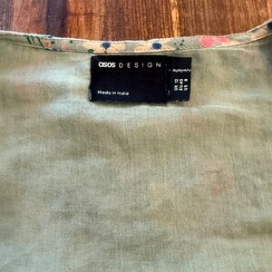 Floral ASOS Design wrap style maternity dress. Very soft , breathable light weight cotton floral pattern on sage green background . Bottom fully lined. Never worn without price tag but additional button attached in bag .