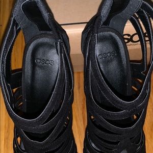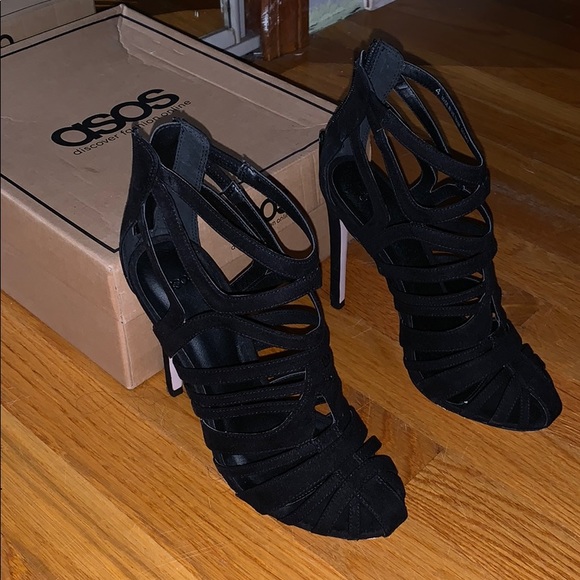 Black strapped ASOS 3 inch heels. Worn once. Perfect with jeans, but also dresses and skirts.