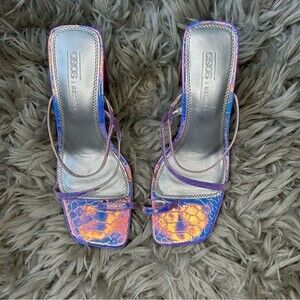 ASOS iridescent Heckle toe loop barely there block heel sandals women’s size 6