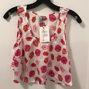 ASOS White pajama set with red and pink kissy lip pattern. Us size XXS. UK & EU size XS. Brand new with tags.
