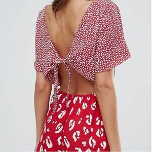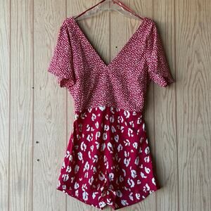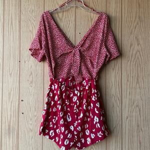ASOS one piece romper jumper shorts with open tie back, elastic back waist, side zipper down the left hip, very lightweight comfortable polyester crepe Georgette fabric, leopard printed looks also like little kisses and hearts, women's size 8 NWT new with tags.