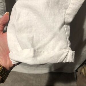 ASOS linen blend pant wide leg crop rolled hem side tie and button zip closure 6