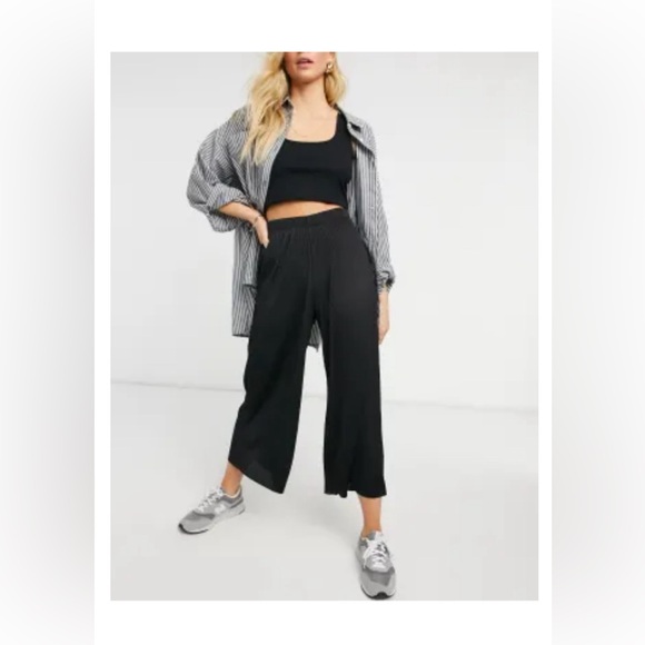 ASOS DESIGN plisse culotte pants in black