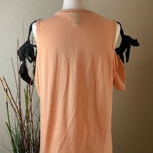 ASOS pink cold shoulder T-shirt with straps at shoulders crewneck