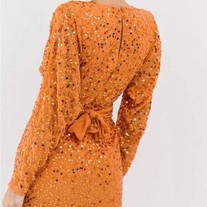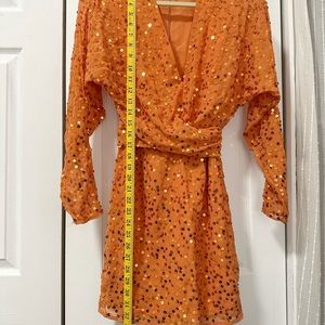 ASOS DESIGN mini dress with batwing sleeve and wrap waist in Orange scatter sequin