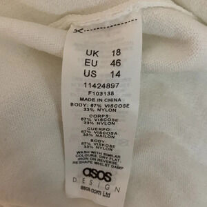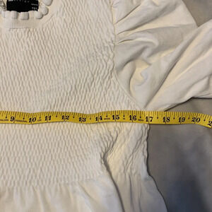 ASOS size 14 white cream puff bishop sleeve smocked chest peplum frill neck
