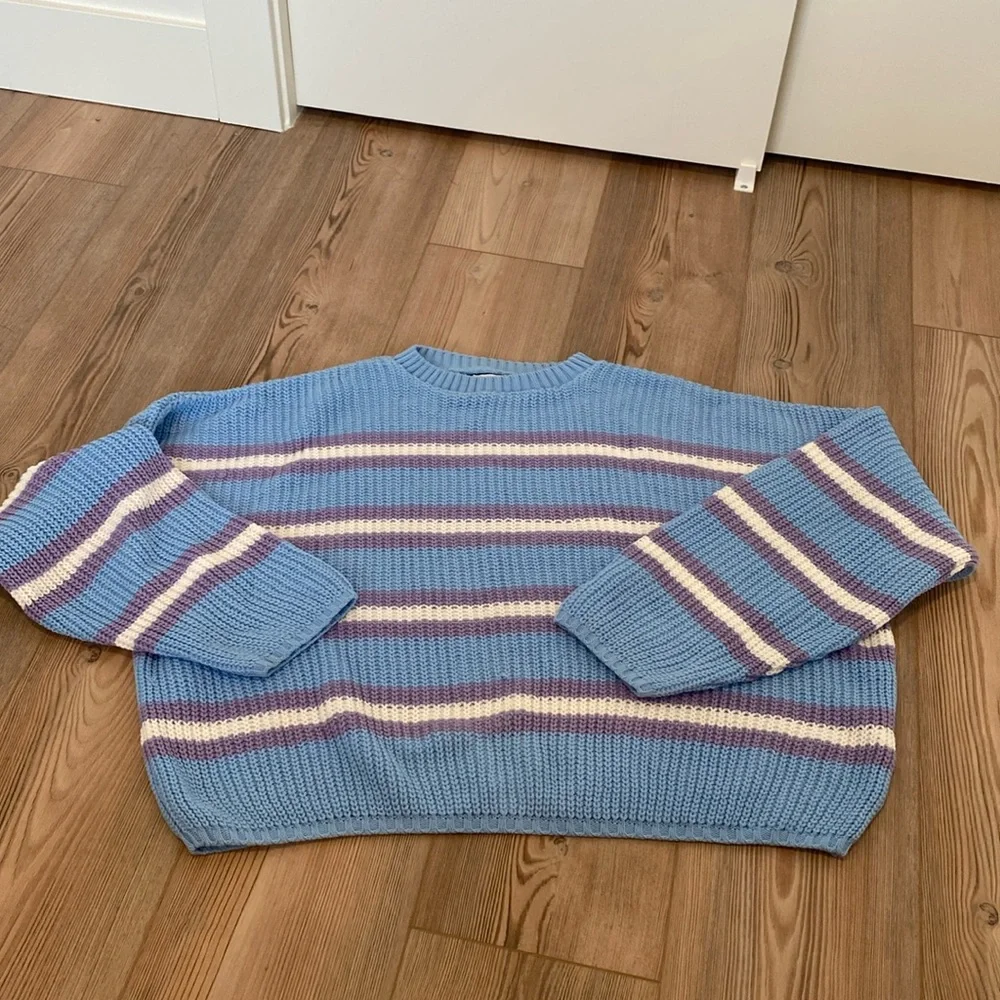 Chunky purple and white striped sweater from ASOS