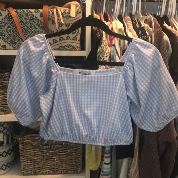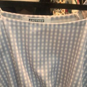 ASOS blue & white checkered crop top with puff sleeves fit sm/med
