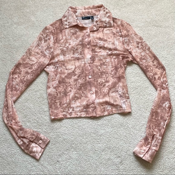 NWOT floral mesh collared blouse Size 4