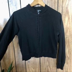 ASOS lightweight black zip up crop jacket. Labeled US 10 but fit is smaller (see measurements).