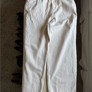 ASOS unisex wide leg raw hem off white jeans 28/28