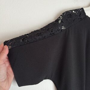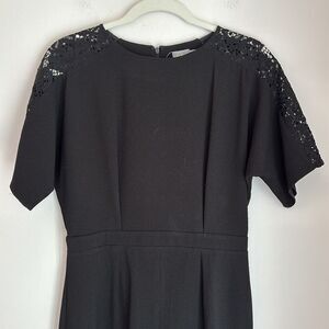 ASOS women’s short sleeve Black lace crepe Sheath Midi Dress Crew Neck 8 NWT!