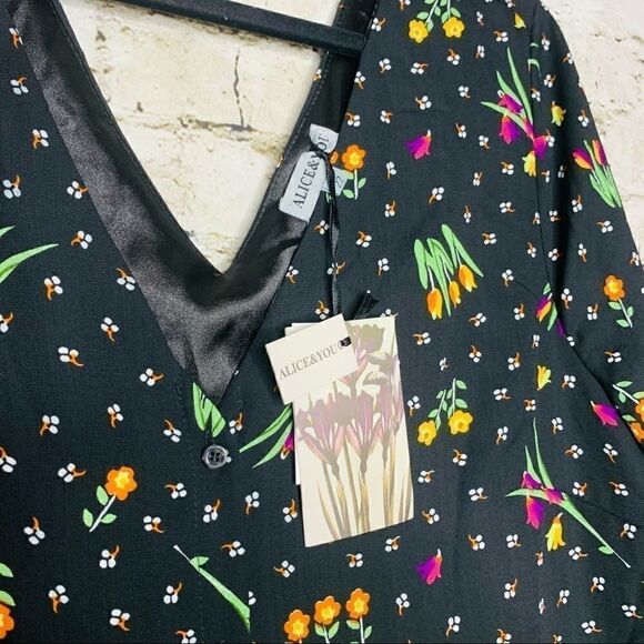 ASOS Alice & You V-Neck Black Floral Dress Plus 22