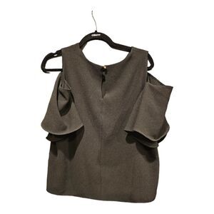 ASOS Black Cold Shoulder Top Size 14 Polyester/Elastane Blend Back Keyhole Button Closure MSRP $49 Pre-Loved H5