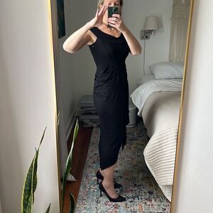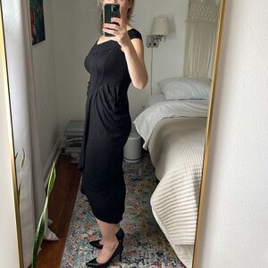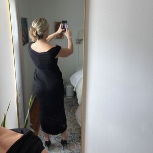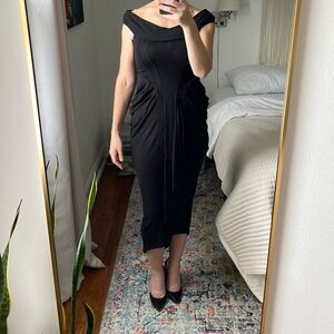 ASOS Design ASOS DESIGN bardot corset detail ruched midi dress in black Size 6