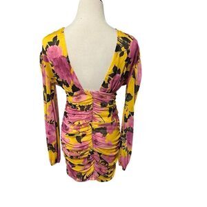 ASOS Design pink and yellow floral dress with long sleeves and fully lined. Waist 32”, bust 38”, sleeve 25” and length from waist-to-hem 20”. Brand new with no tags attached.