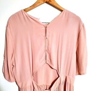 Solid rusty rose wide leg dress like jumpsuit. Open peek-a-boo back detail. It's new with tags. Please refer to pictures for best description and condition verification.