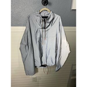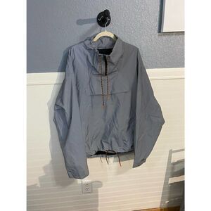 This ASOS jacket features a gray color, windbreaker material and a pullover style.