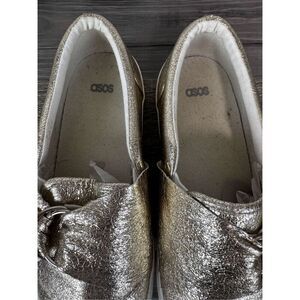 ASOS Metallic Gold Slip On Bow Platform Loafer Size 7