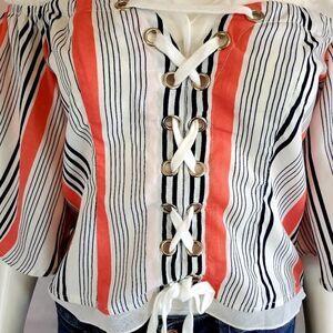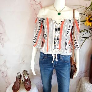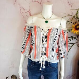 Excellent condition no flaws ASOS side zip off shoulder lace up top with chiffon trim easily dress up or down