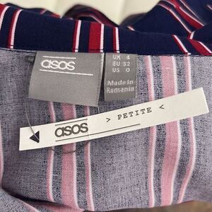 ASOS Pantsuit Sz 0 V Neck Collar Short Sleeve Navy Blue Red Striped Side Belted