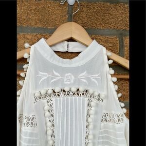 ASOS Pink Premium Cold Shoulder Dip Dye Victoriana Midi Dress With Pom Pom Trims And Lace Inserts