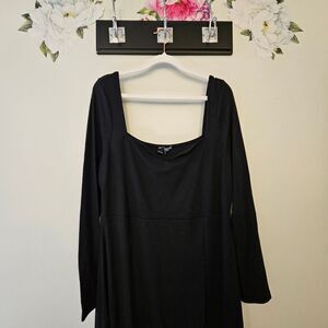 Black ribbed bodycon dress with side slit. Very stretchy cotton feeling material. Square neckline and long sleeves.
