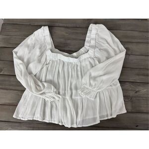 ASOS Square Neck Crinkle Smock Ivory White Smock Top Size 10