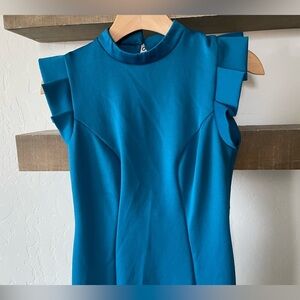 ASOS|Teal Midi high neck pencil dress with cut out back and shoulder detail•••