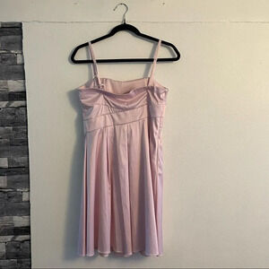 Beautiful pink cocktail dress with belt detail on waist and detachable spaghetti straps. Can be worn strapless or with spaghetti straps