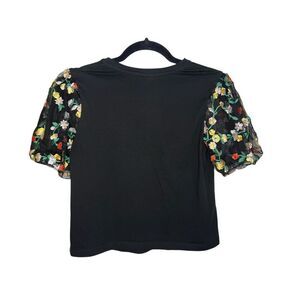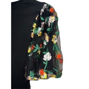 ASOS Women’s 4 Top Floral Embroidered Lace Sleeves Black Crewneck Stretch