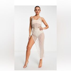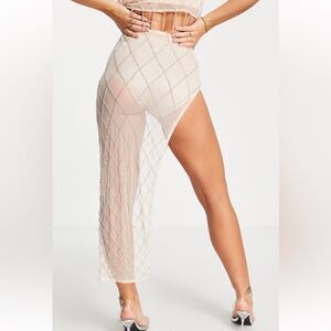 ASOS design Diamanté Side Slit Mesh Midi Skirt NWT