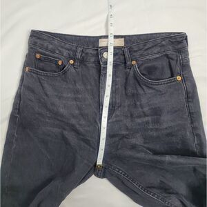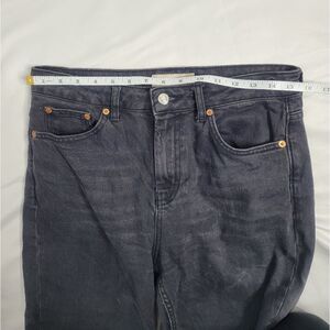 ASOS jeans black straight leg raw hem high waisted ankle 30