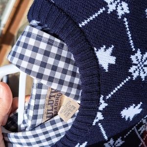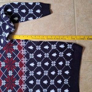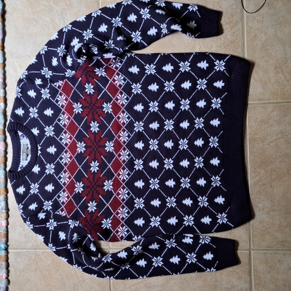 Sweater is new.Navy and white with dark red in front.🚩Yes NEW🚩.Made in Romania.Duluth shirt(large) underneath for sale in closet..This listing is for sweater only.Mens large.Inspection sticker still on material tag.