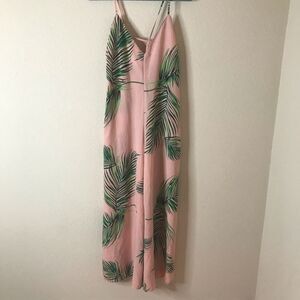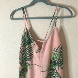 Size 4. Strappy back. V neck front. See picture for material. It’s lightweight and so cute for the summer! Also has a wide leg