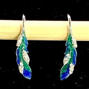 ASO Sterling 925 Silver Feather Dangle Earrings