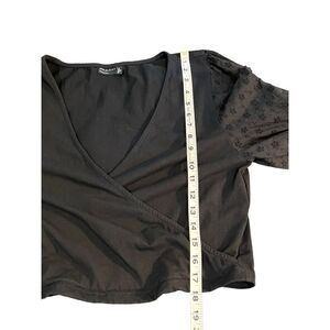 Great condition ASOS cropped, black blouse with eyelet puffed sleeves. Wrap style.
