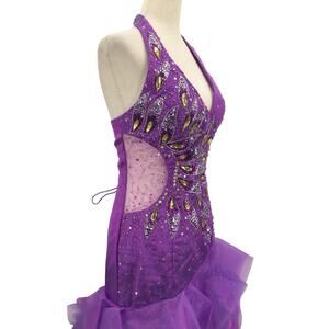 ASPEED M purple beaded halter tiered Y2k gown prom pageant maxi dress NWT 0B9
