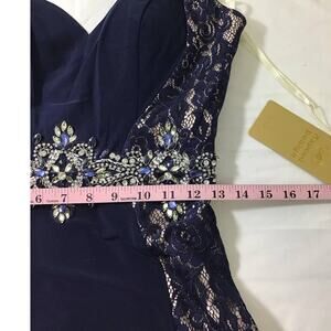ASPEED SZ m navy lace beaded halter sweetheart neck maxi gown dress NWT B163