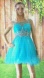 Make a statement in this beautiful teal prom dress adorned with rhinestones. Pair them with cream or silver-colored heels to complete the look. Be the bell at your next ball in this fun dress!