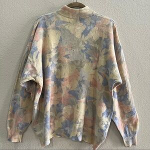 The sweater features a charming crew neck and long sleeves that complement its tight-knit construction. Its lightweight nature paired with a delicate floral pattern offers a touch of bohemian flair suitable for various occasions, from casual outings to cocktail parties. The vintage appeal, combined with a hint of 90s nostalgia, makes it a unique addition to any wardrobe.