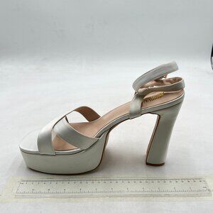 ASPIRYNA White Crossed Strap Open Toe Platform Ankle Strap Buckle Dance Sandal