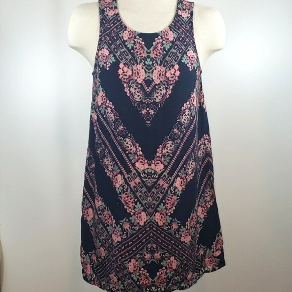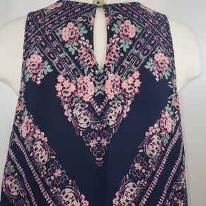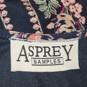 Pre-owned Asprey Samples floral print dress. Sleeveless dress with keyhole and button closure on back. No size or material tags attached but according to size chart I belive it is about a medium. Please use measurements below. Some signs of washwear and a few light markings. Please see photos.