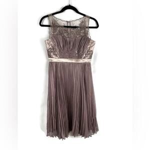 ASRI Fairy Prom Pleated 100% Silk Mauve Mini Dress, Size 2, Satin & Sequins