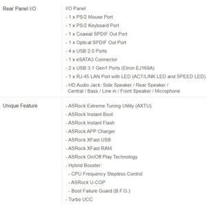 - Supports ASRock XFast RAM, XFast USB Technologies