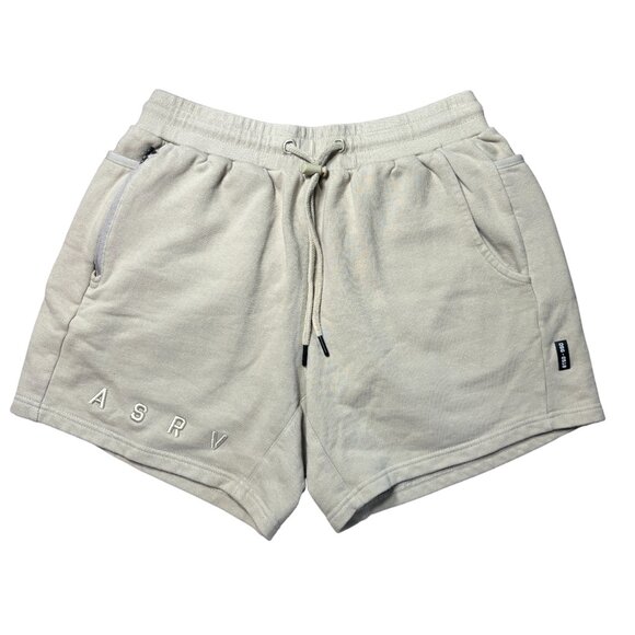 ASRV French Terry Tech Sweat Shorts size L large sand khaki 6" inseam bone