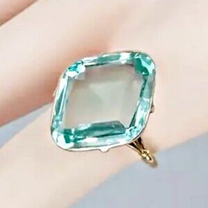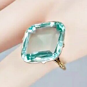 ASSCHER SEMI PRECIOUS CULTURED Aquamarine 14 Carat Prong Setting Solitaire