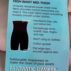 Fantastically firms midriff, hips, thighs and rear! The outer fabric keeps everything invisibly smooth under clothes.