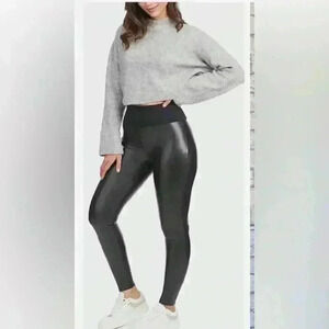 ASSETS by SPANX Women's All Over Faux Leather Leggings Black