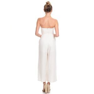 The Mara Jumpsuit has a wide-leg silhouette with a sleeveless bodice featuring a sweetheart neckline. Its linen blend keeps things easy-breezy and the keyhole cutout and exaggerated bow front show the perfect peek of skin.